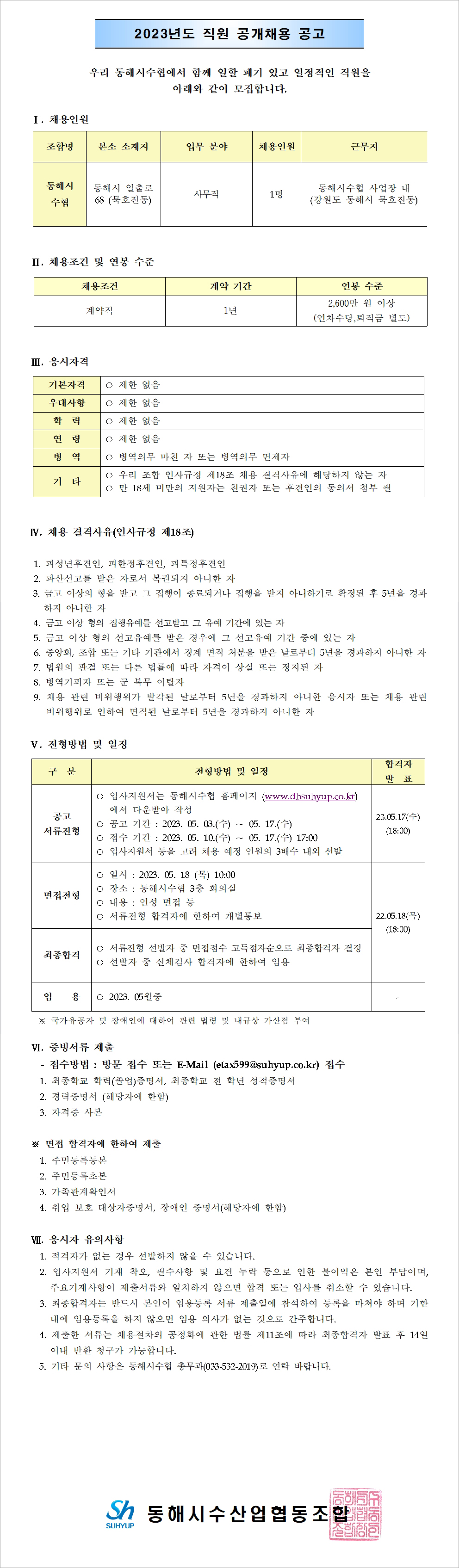 2023³âµµ Á÷¿ø °ø°³Ã¤¿ë °ø°í