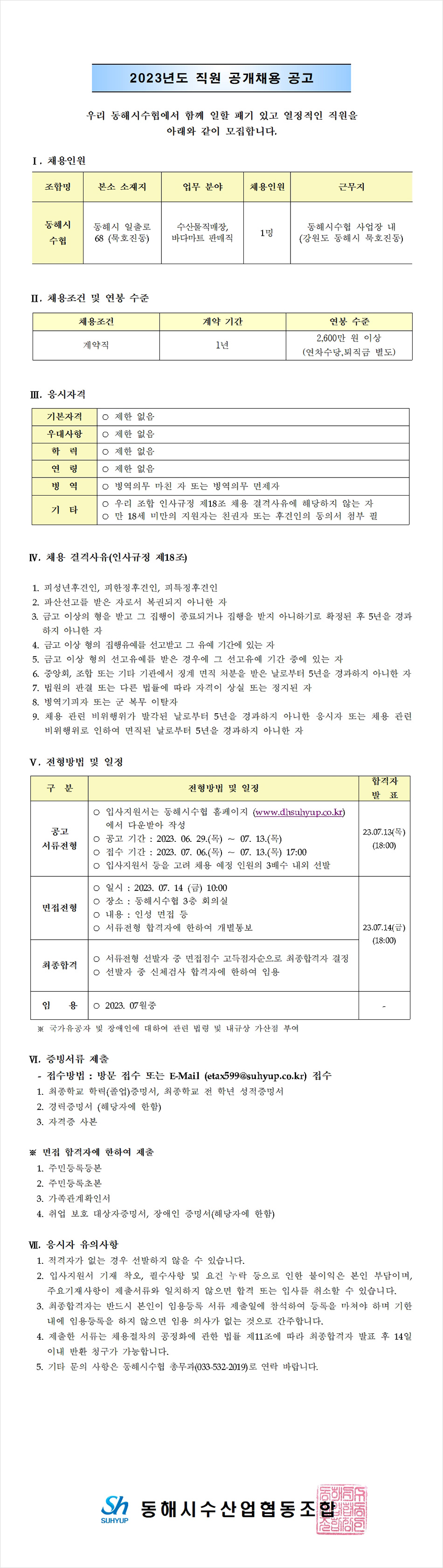 2023³âµµ Á÷¿ø °ø°³Ã¤¿ë °ø°í