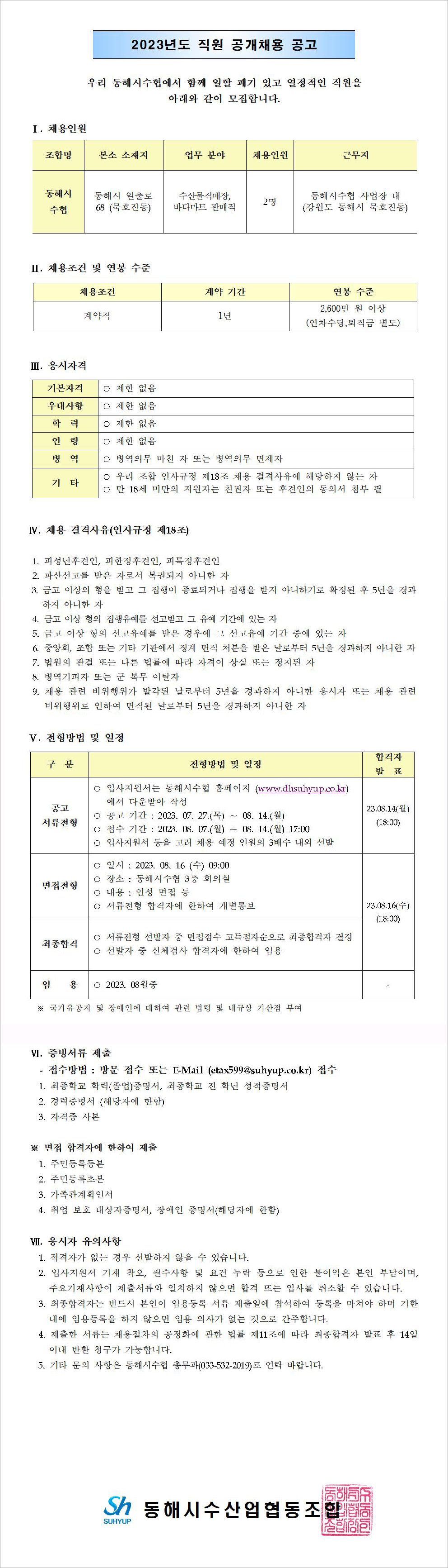 2023³âµµ Á÷¿ø °ø°³Ã¤¿ë °ø°í