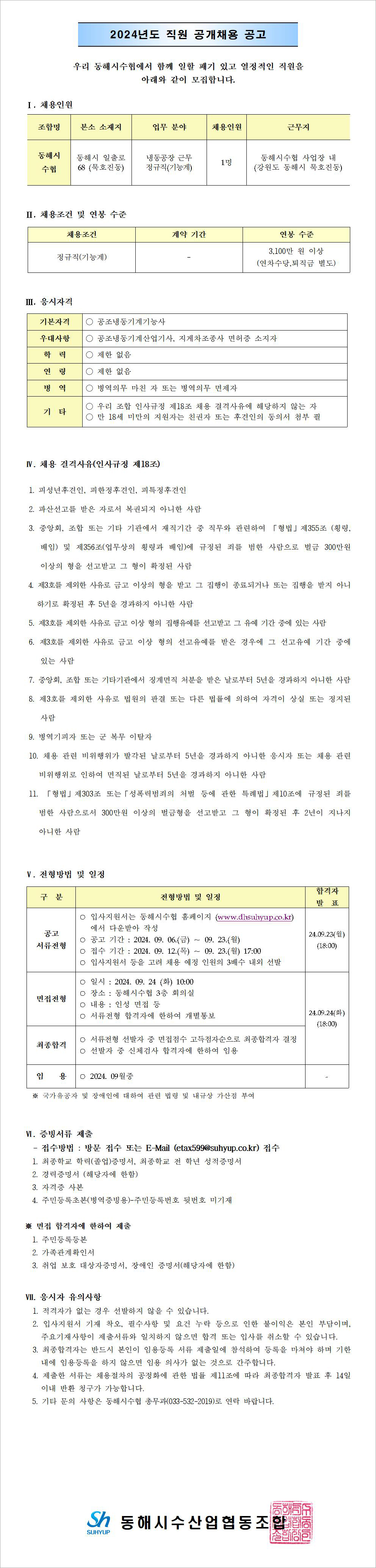 2024³âµµ Á÷¿ø °ø°³Ã¤¿ë °ø°í(³Ãµ¿³ÃÀå Á¤±ÔÁ÷)