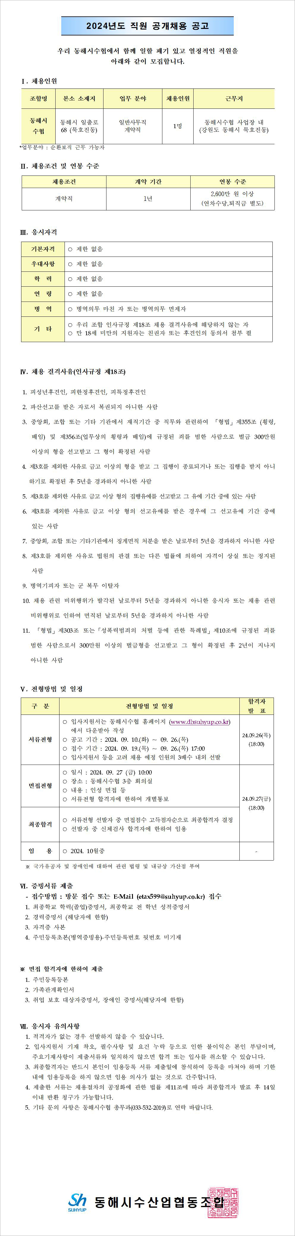 2024³âµµ Á÷¿ø °ø°³Ã¤¿ë °ø°í(ÀϹݻ繫Á÷ °è¾àÁ÷)