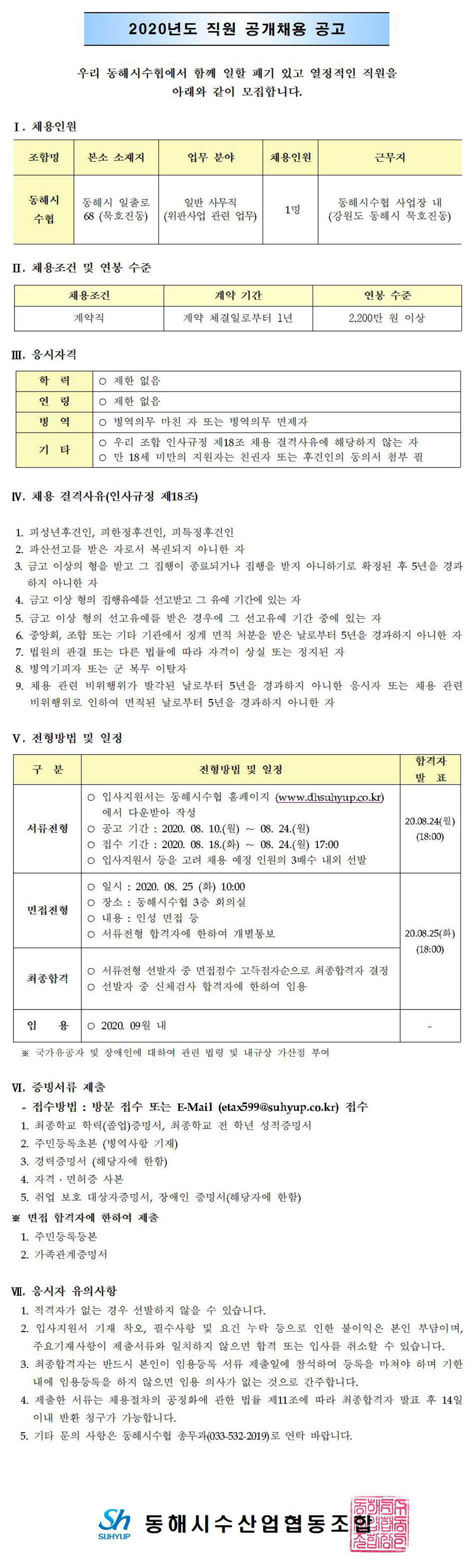 2020³â µ¿ÇؽüöÇù Á÷¿øÃ¤¿ë °ø°í(°è¾àÁ÷)