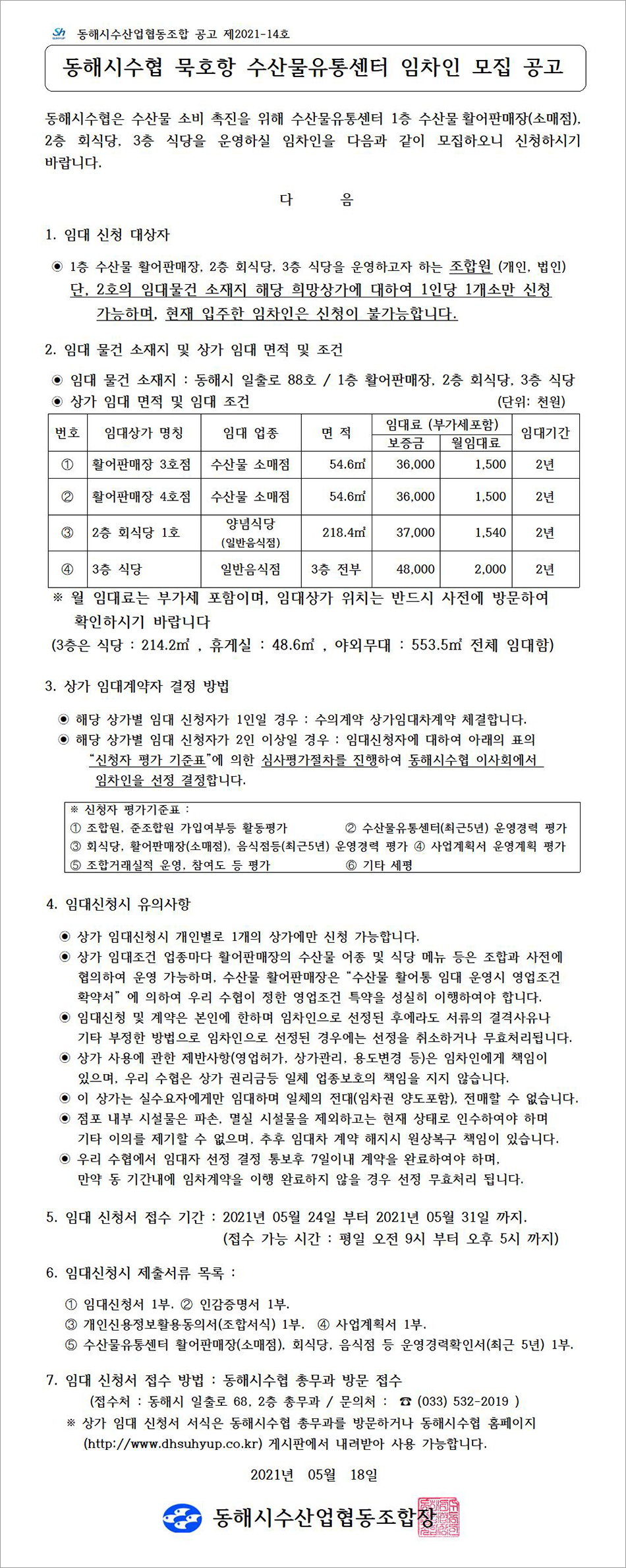 µ¿ÇؽüöÇù ¼ö»ê¹°À¯Åë¼¾ÅÍ ÀÓ´ë»ç¾÷ÀÚ ¸ðÁý °ø°í (2021.05.18).hwp