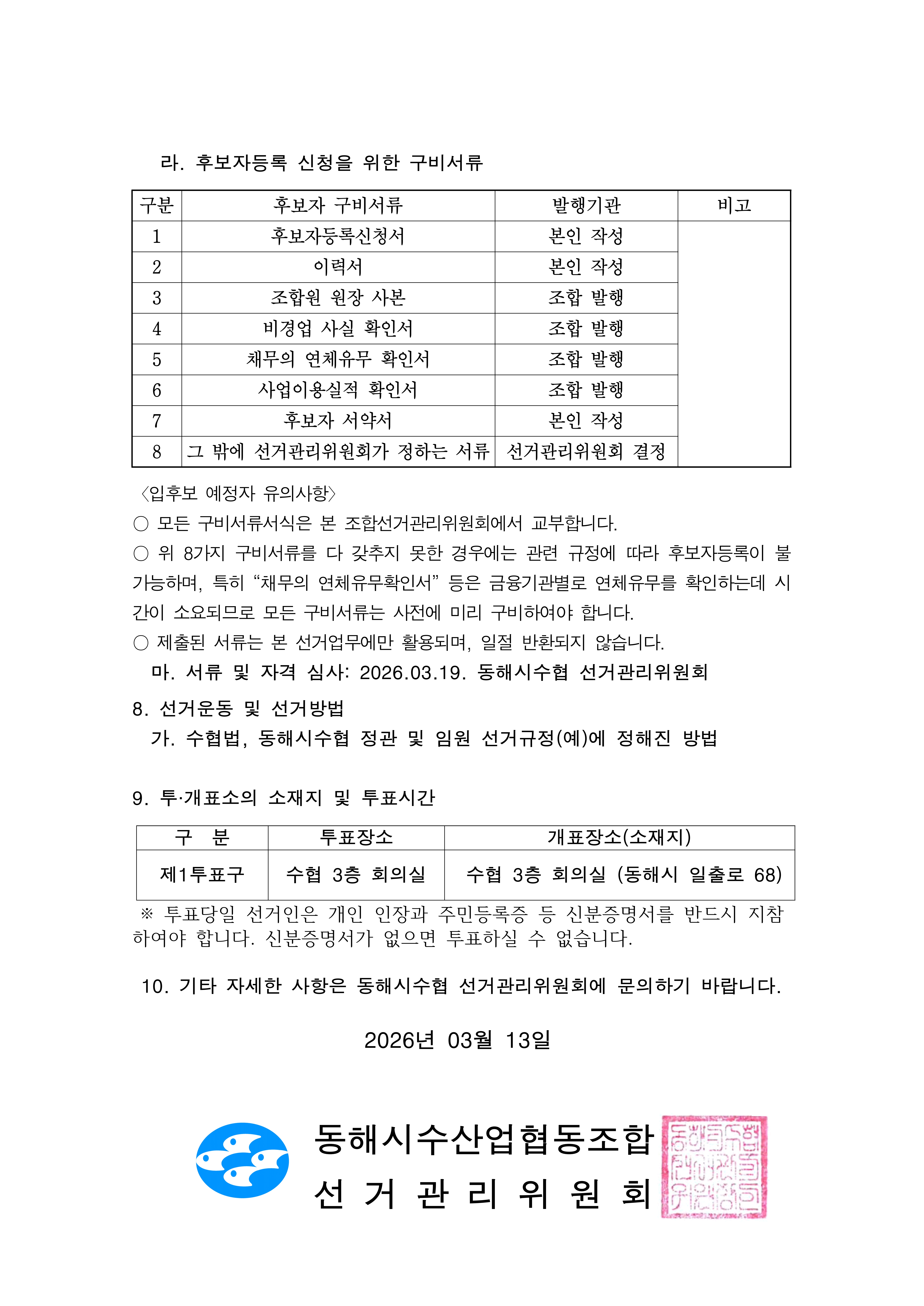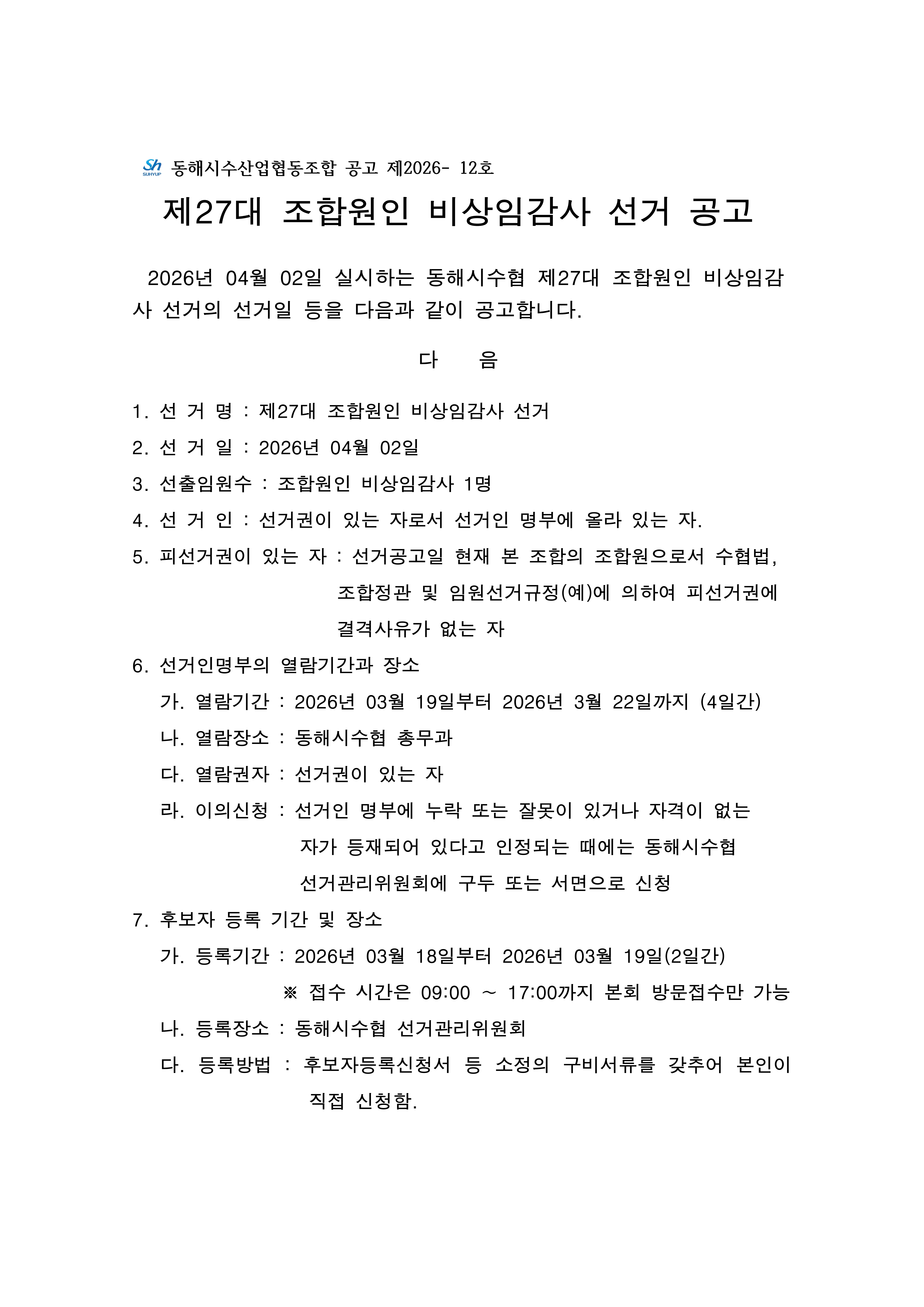 µ¿ÇؽüöÇù Á¦27´ë Á¶ÇÕ¿øÀÎ ºñ»óÀÓ°¨»ç ¼±°Å°ø°í
