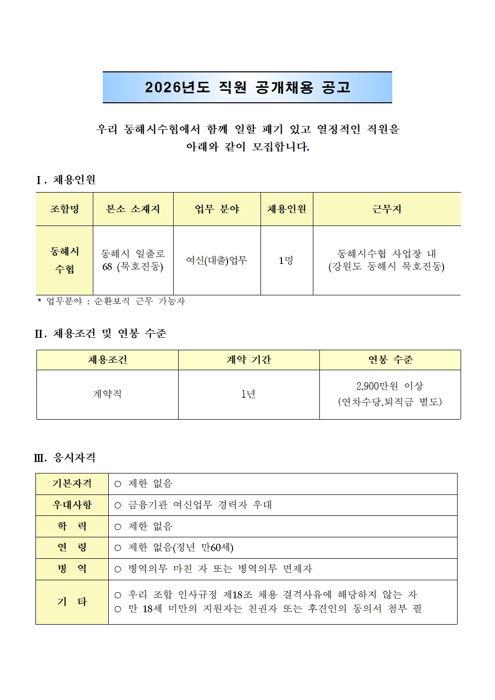 µ¿ÇؽüöÇù °è¾àÁ÷ Á÷¿ø ä¿ë °ø°í
