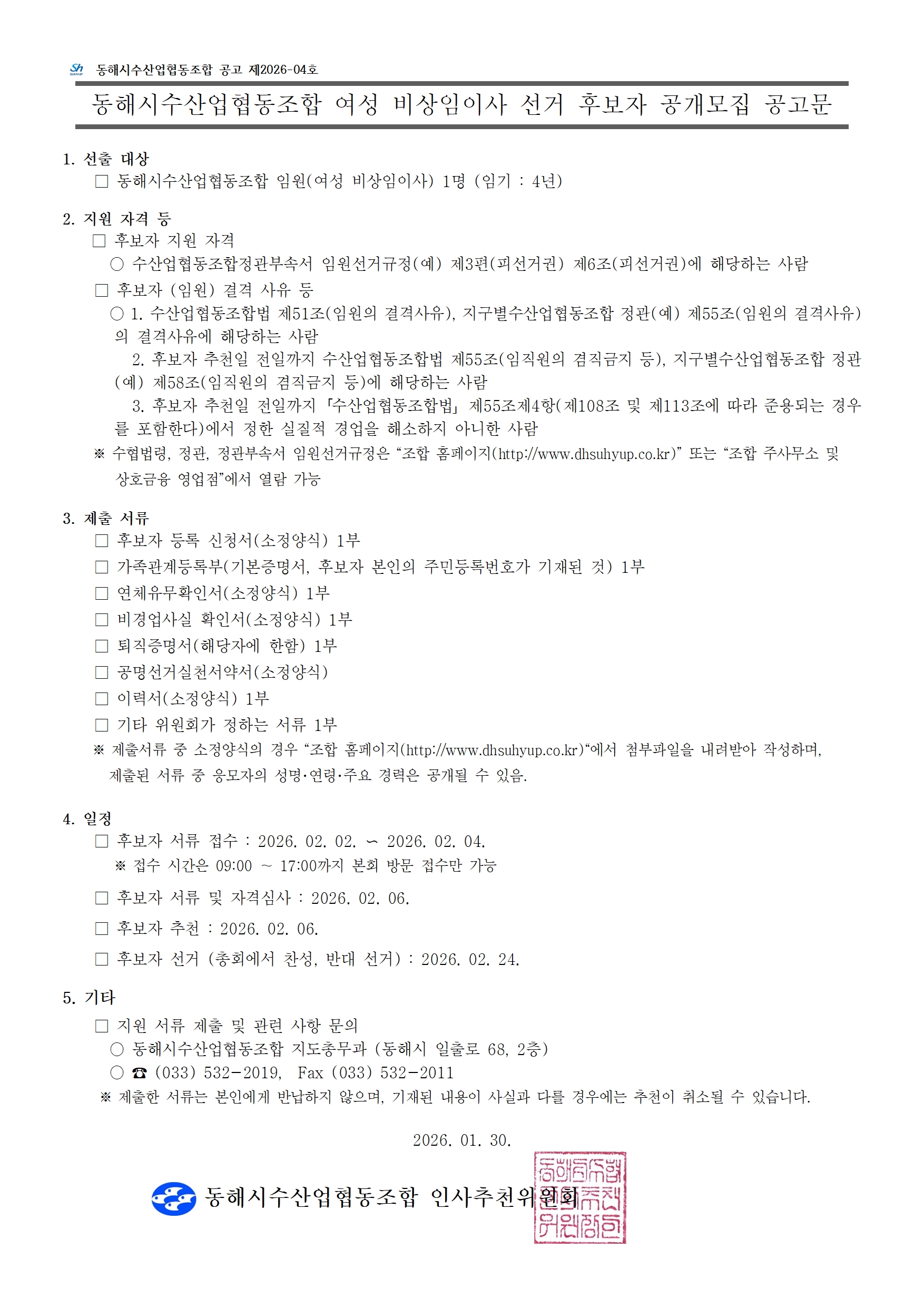 2026³âµµ Á¦20´ë ¿©¼º ºñ»óÀÓÀÌ»ç ¼±°Å Èĺ¸ÀÚ°ø°³¸ðÁý °ø°í¹®.hwp