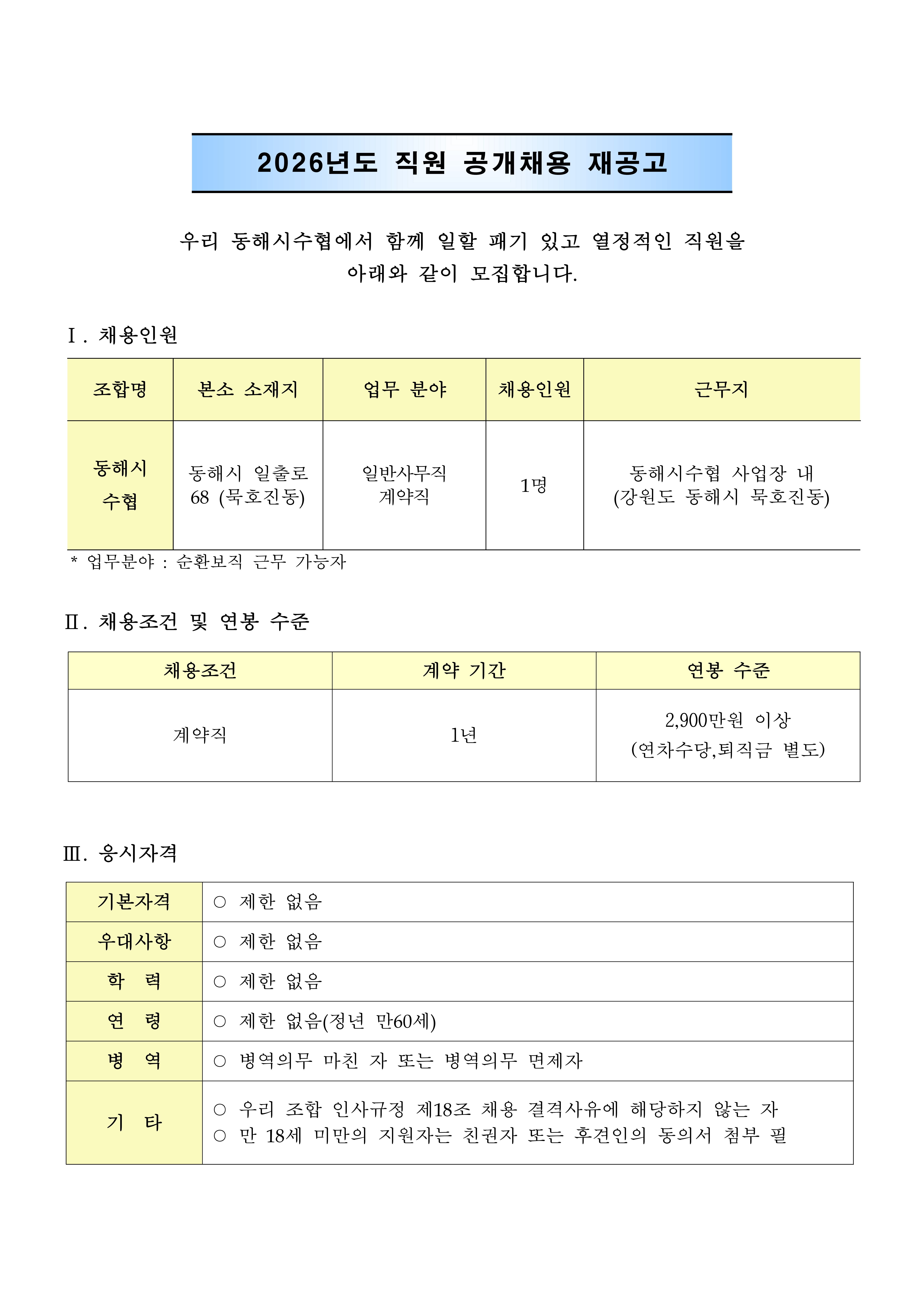 µ¿ÇؽüöÇù °è¾àÁ÷Á÷¿ø ä¿ë Àç°ø°í